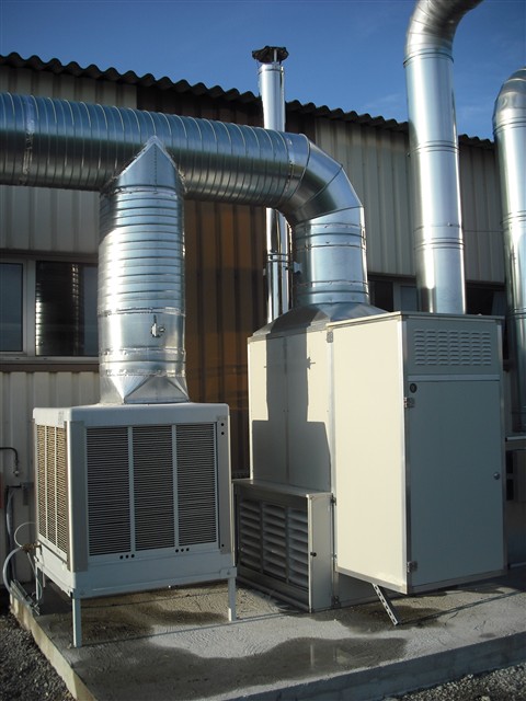 Installation de ventilation rafraîchie avec rafraîchisseurs adiabatiques